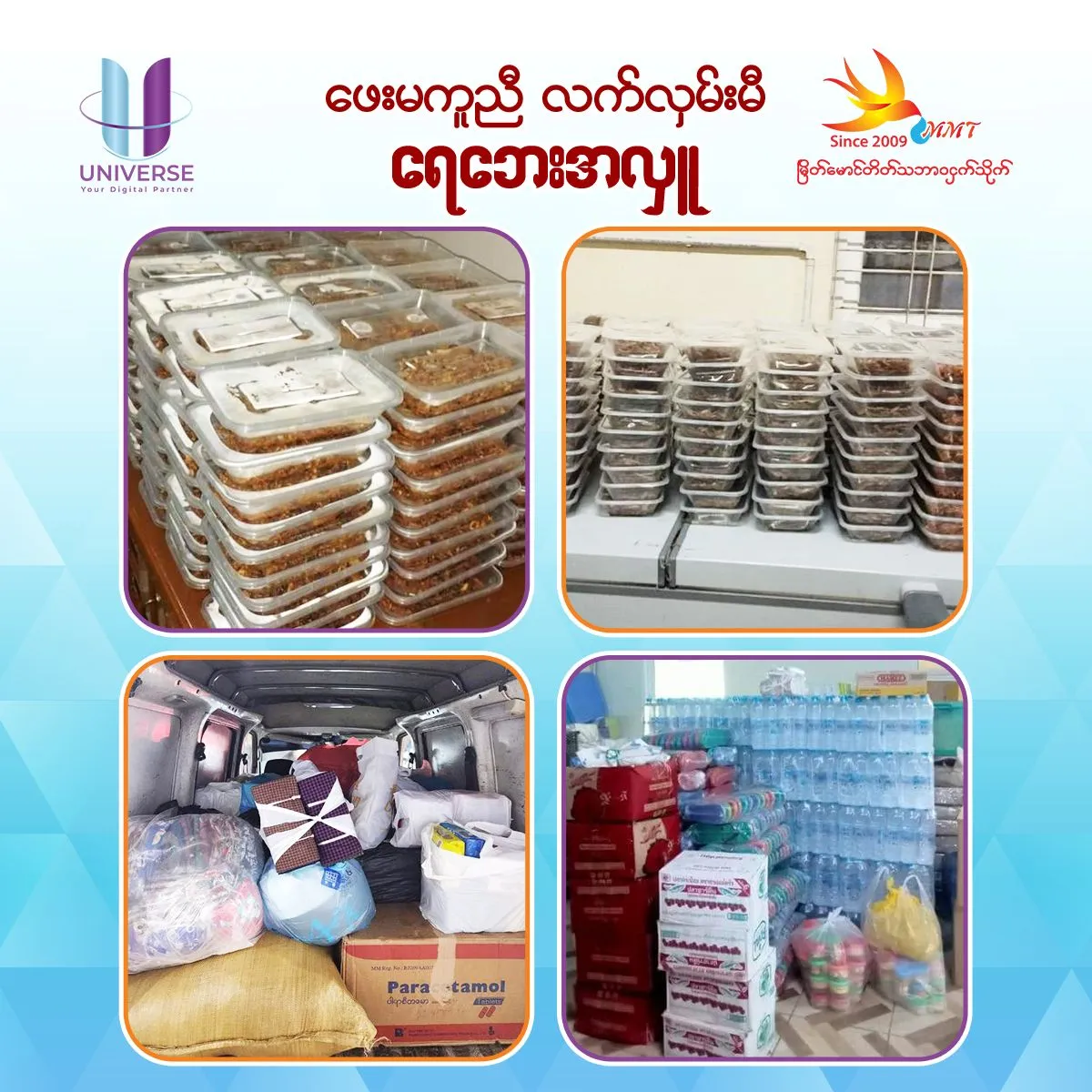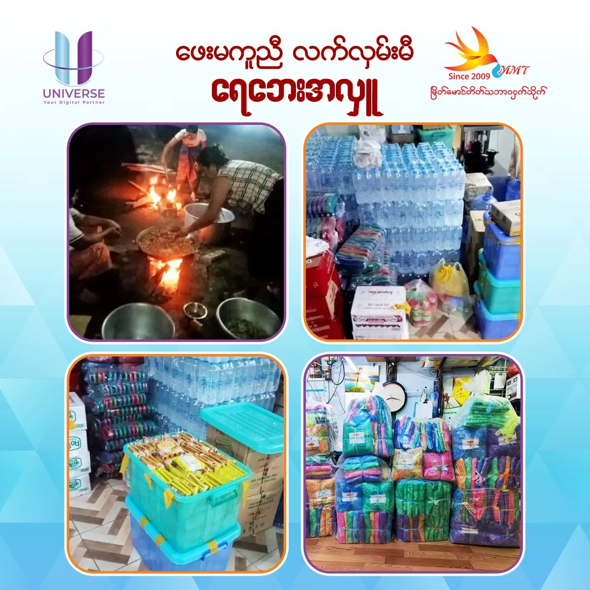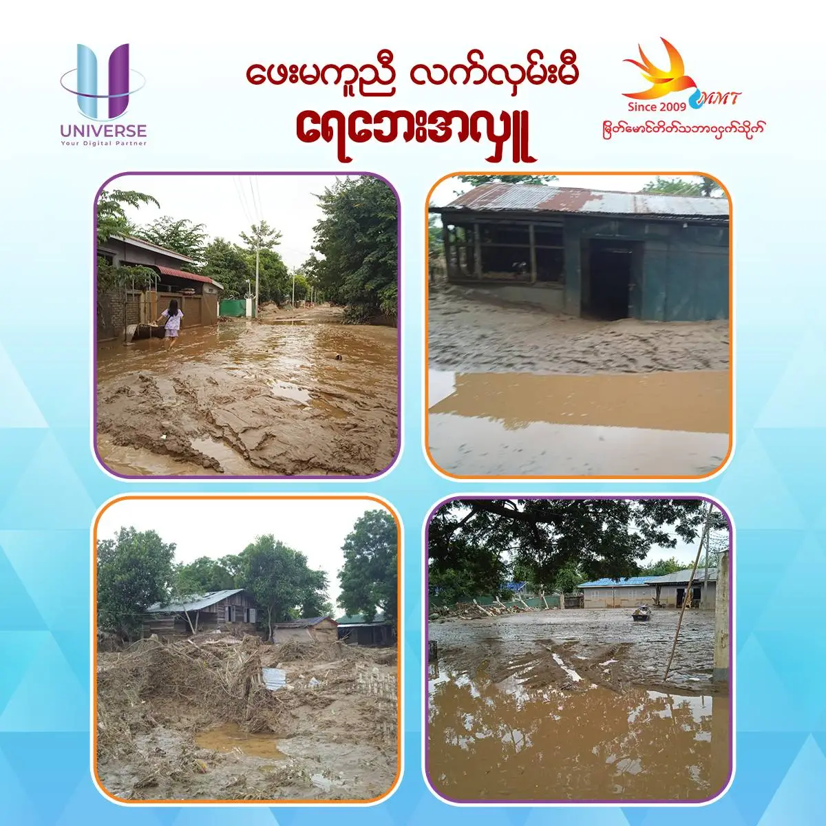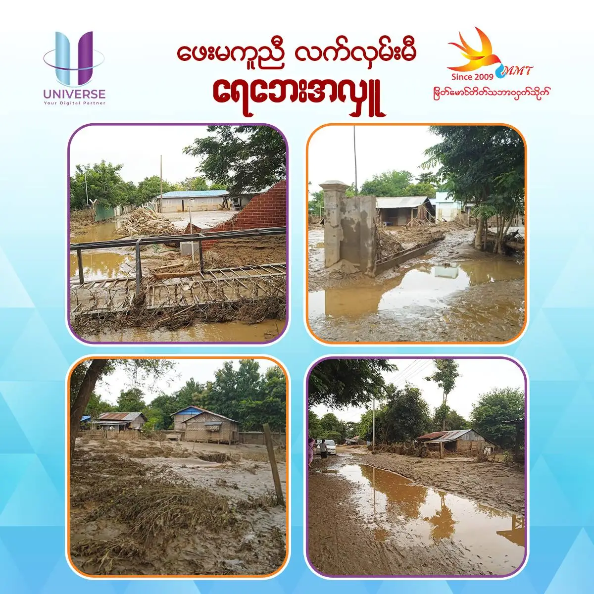 Timely Flood Relief: Extending a Helping HandOn Sunday, 15th September 2024, the families of ‘Myeik Maung Taik Natural Bird’s Nest, ‘Myeik Maung Taik Kat Kyi Kike’, and ‘UNIVERSE – Your Digital Partner’ visited and made donations to those affected by the floods.